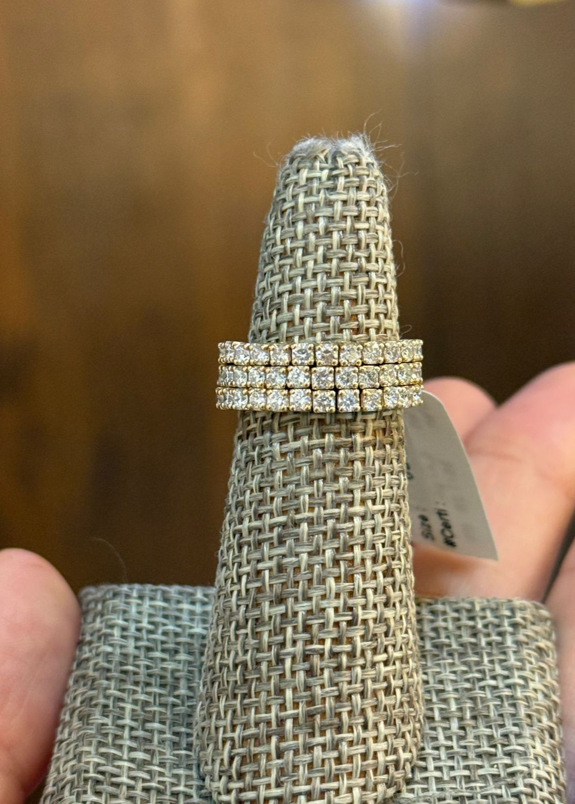 Anillo ajustable y flexible con diamantes de laboratorio con un total de 1.2ct montados en oro amarillo de 14k.