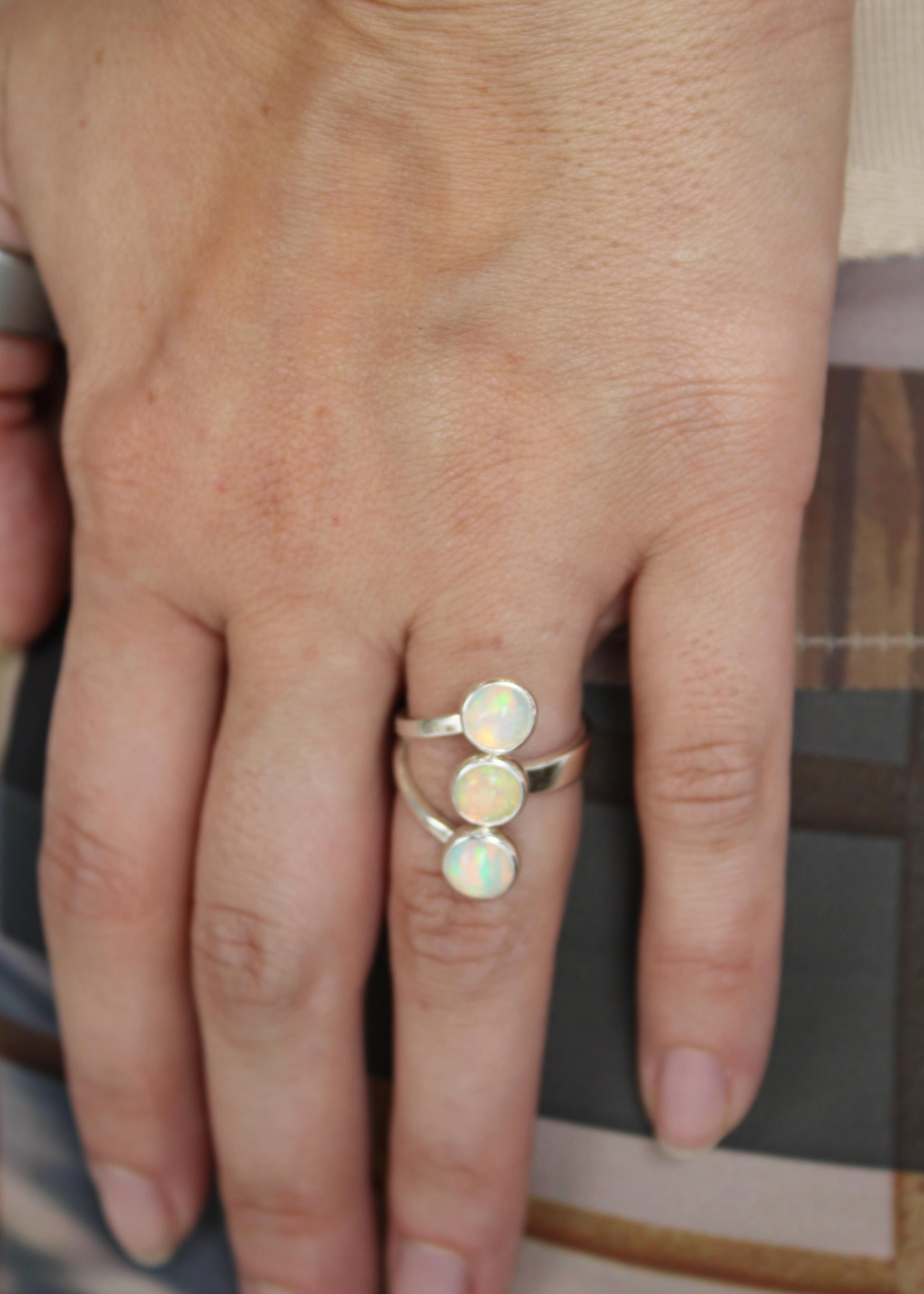 Anillo diseño ajustable con tres piedras naturales en plata .925