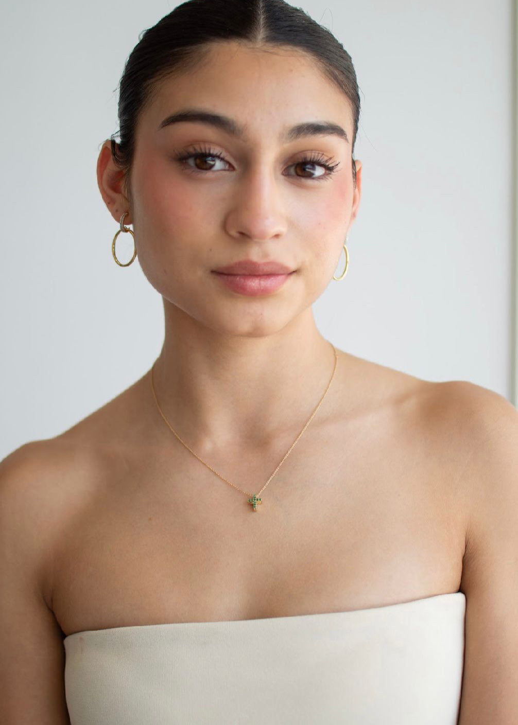 Aretes con detalle doble de diamantes naturales con aro colgante.
