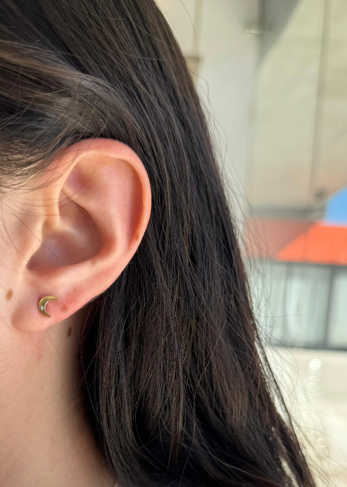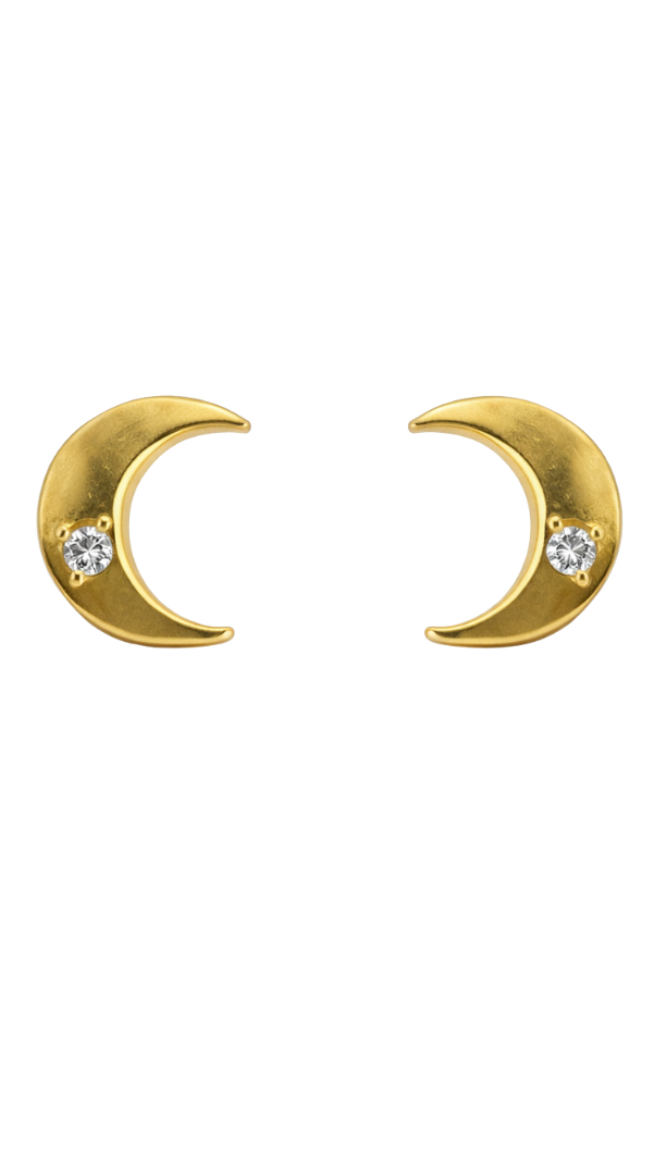 Aretes con diseño de luna con detalle de un zc en oro amarillo de 10k.