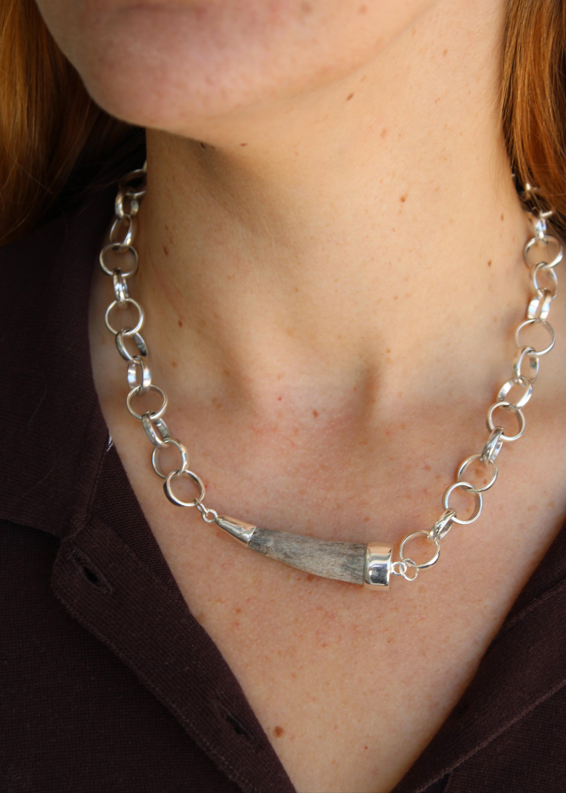 Cadena de plata 925, con un largo de 50 cm, se puede abrochar en otros eslabones para hacerla más corta.