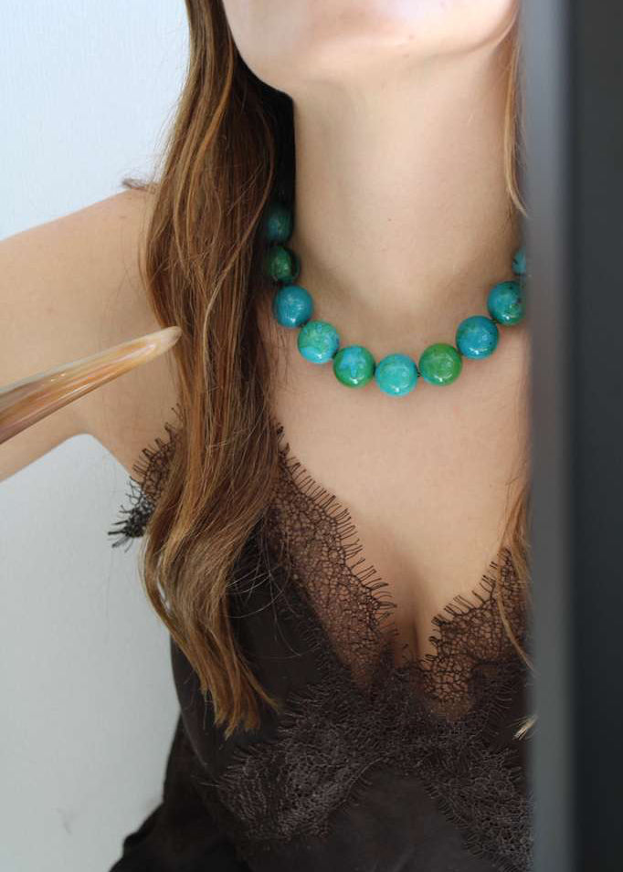 Collar cuentas redondas de piedras naturales en diferentes tonos con broche de plata.