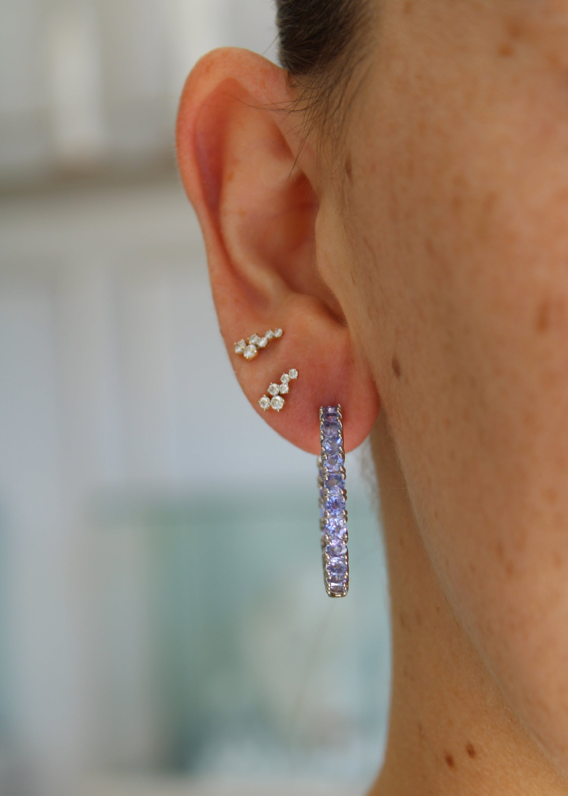 Arracadas in and out 4.38ct diamantes de laboratorio montados en oro blanco 14k.