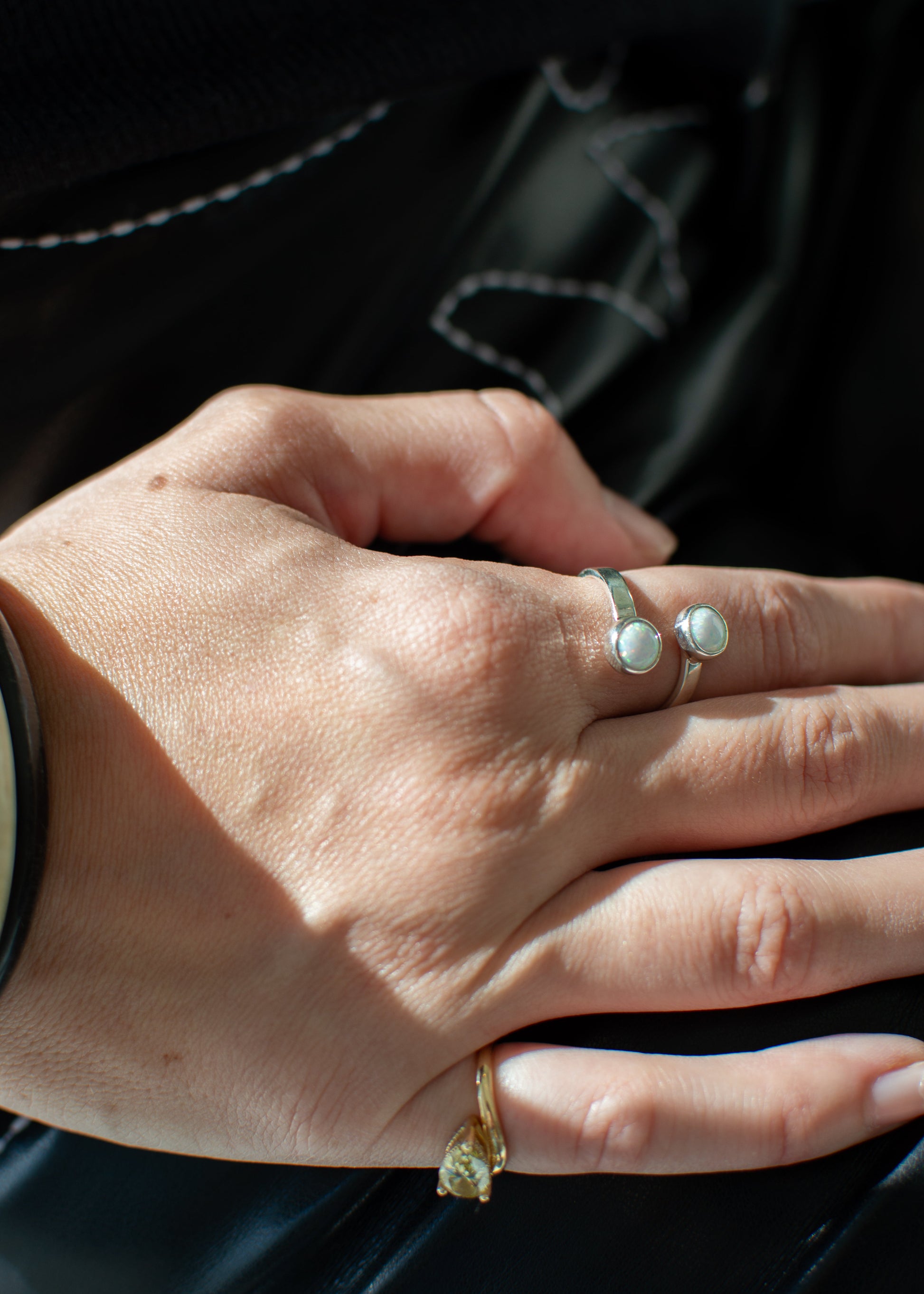 Anillo ajustable con dos ópalos australianos montados en plata 925.