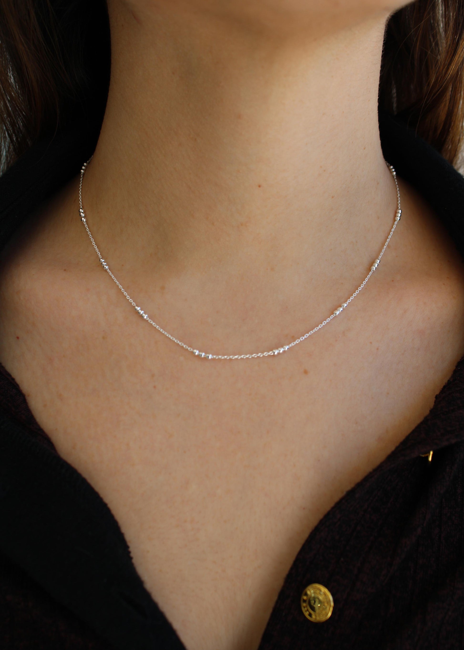 Collar con diseño de bolitas en plata 925, argollas para que ajustes el largo a tu gusto.