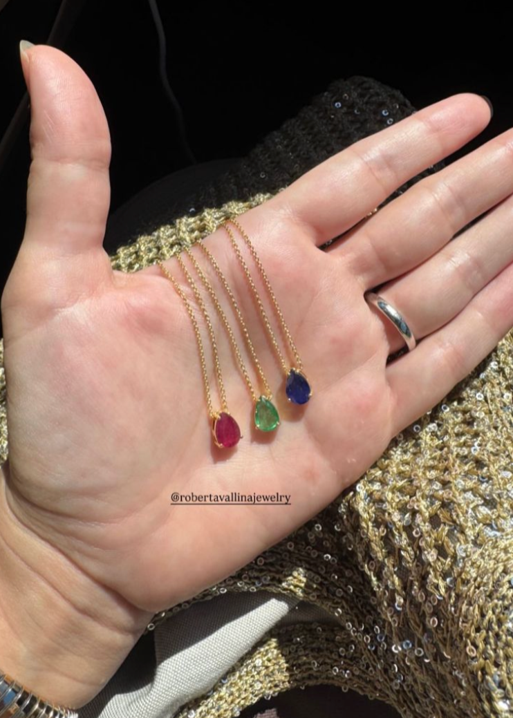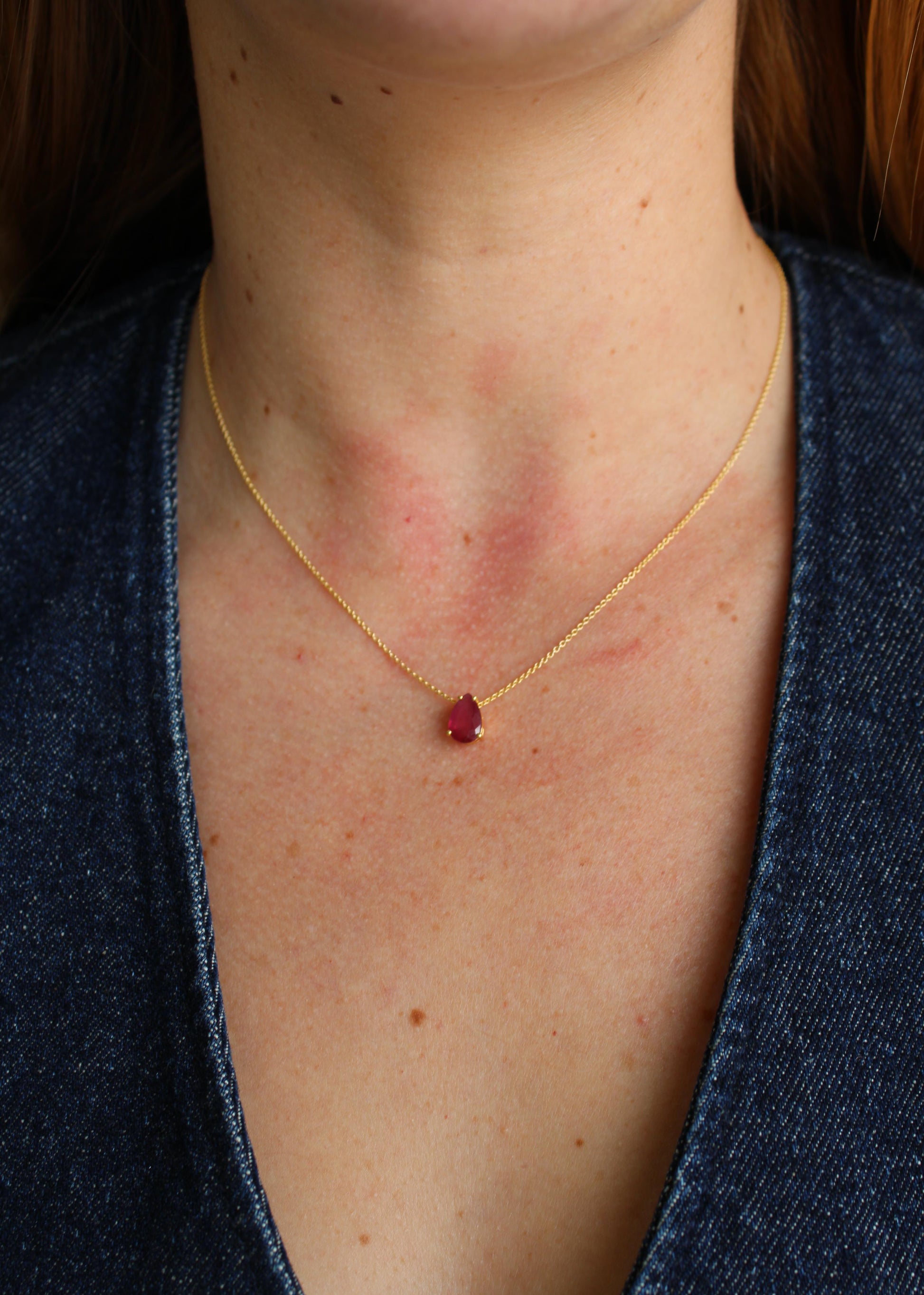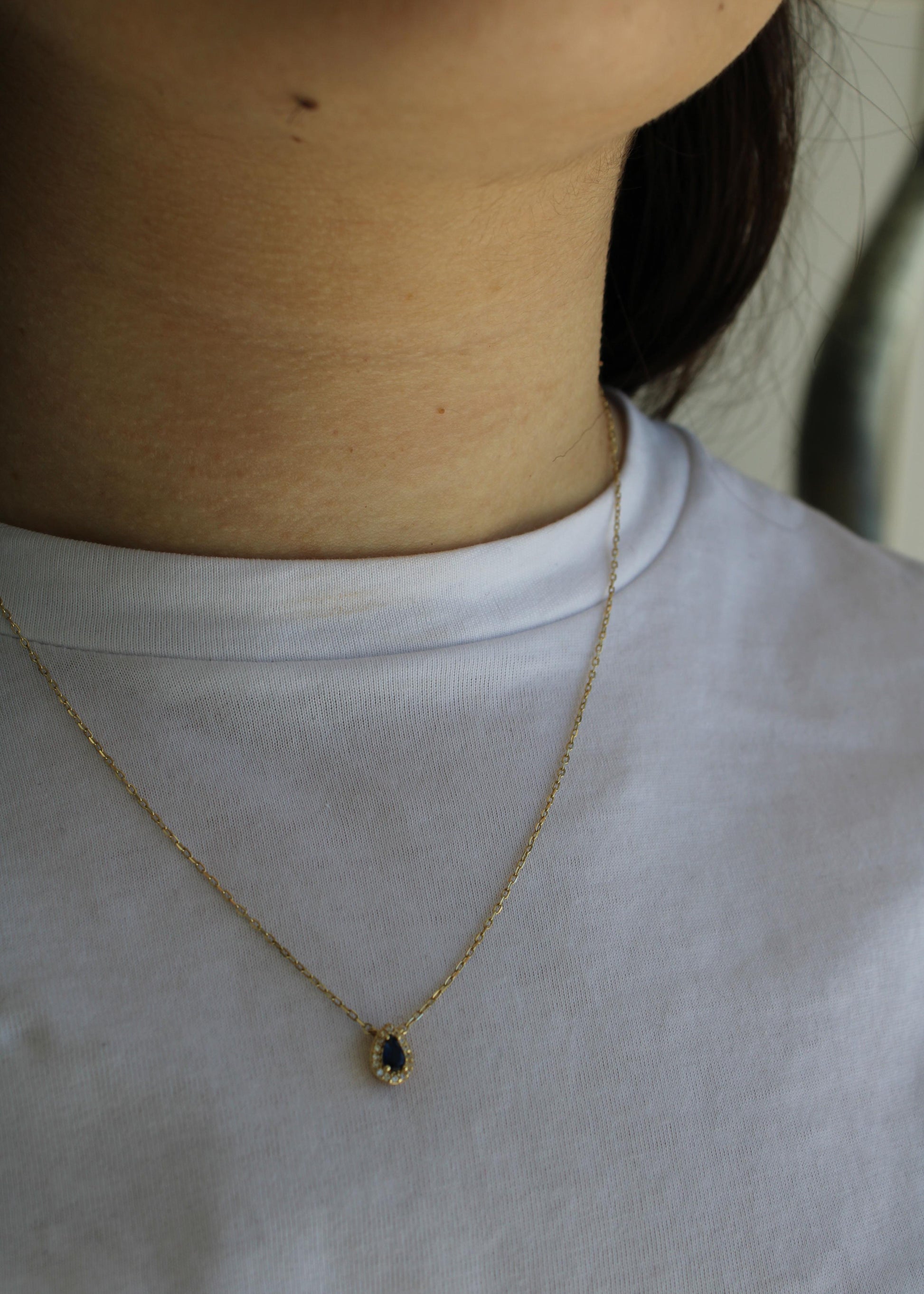 Collar piedra natural en corte pera montado en oro amarillo 14kl.