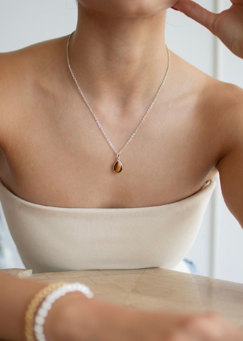 Collar Ojo de Tigre Sencillo Gota