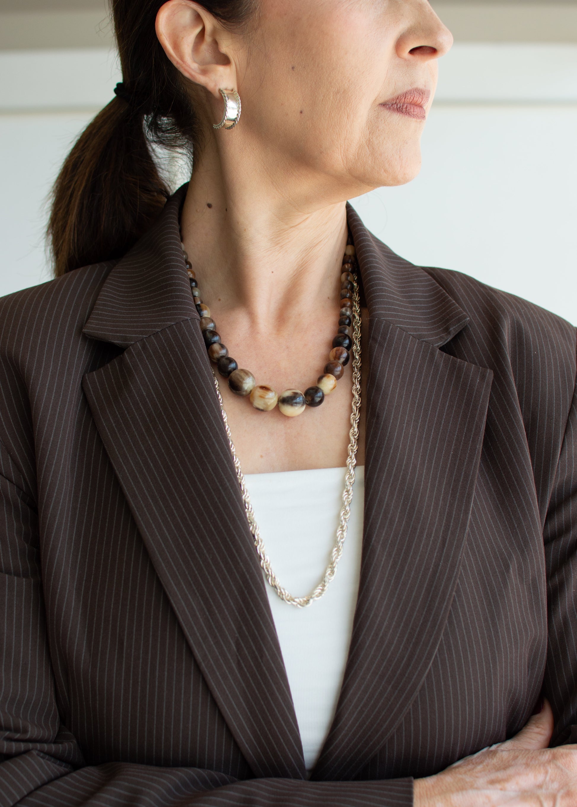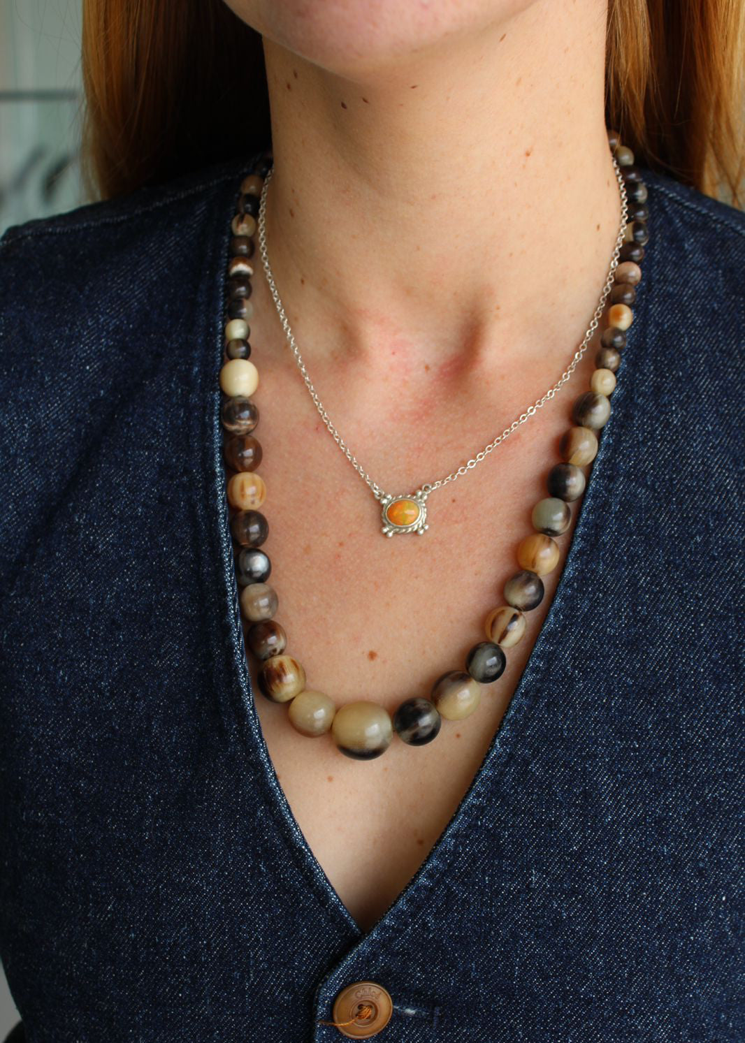 Collar cuentas grandes en tonos tierra.