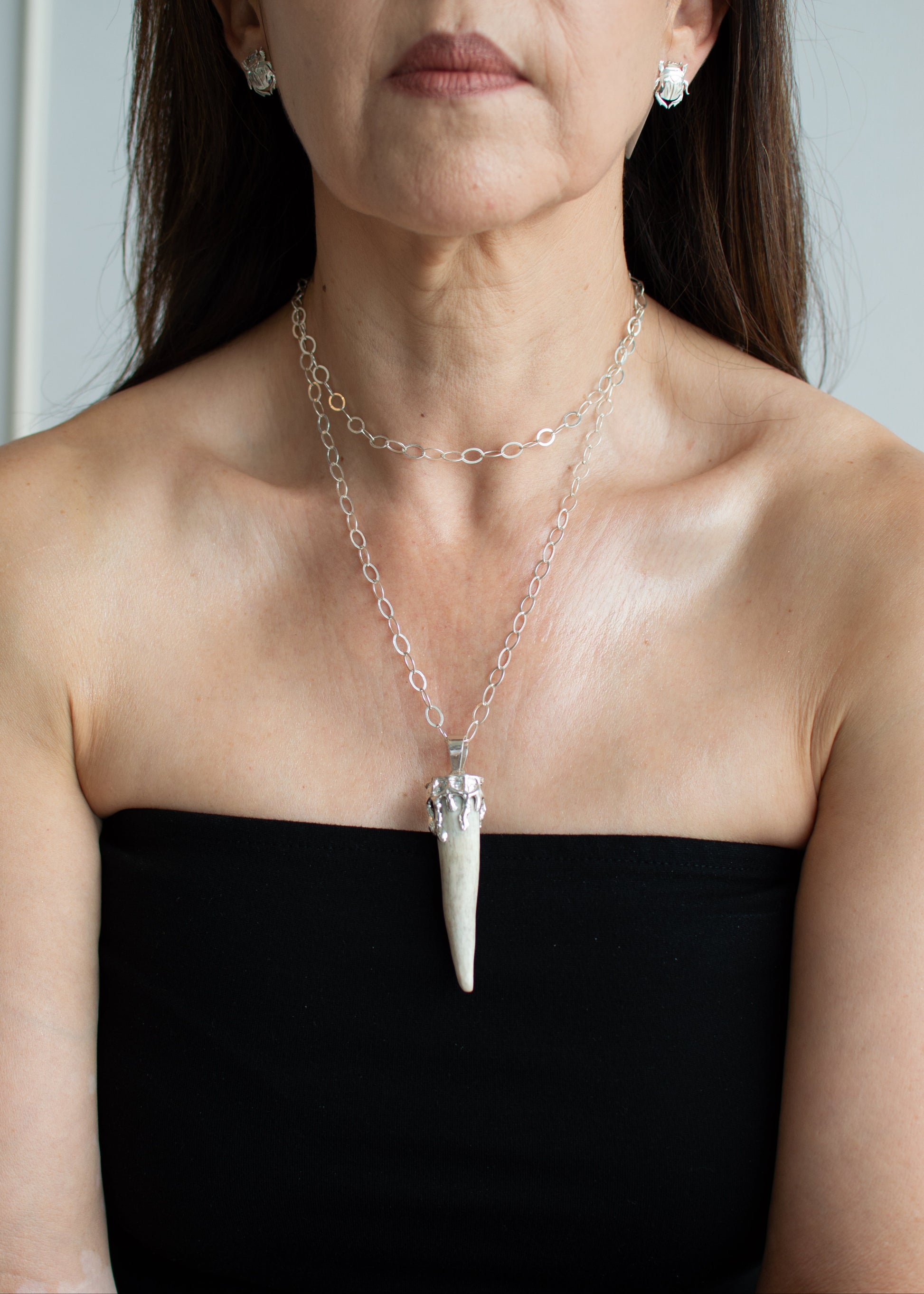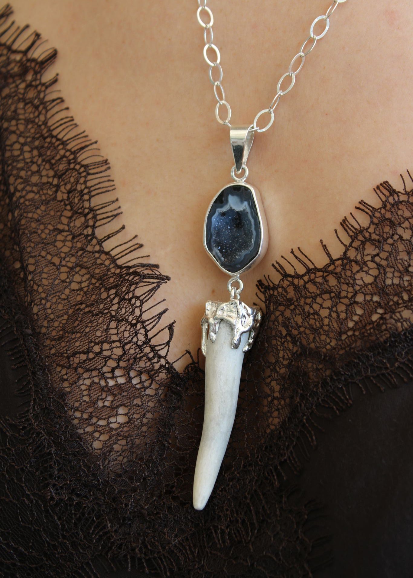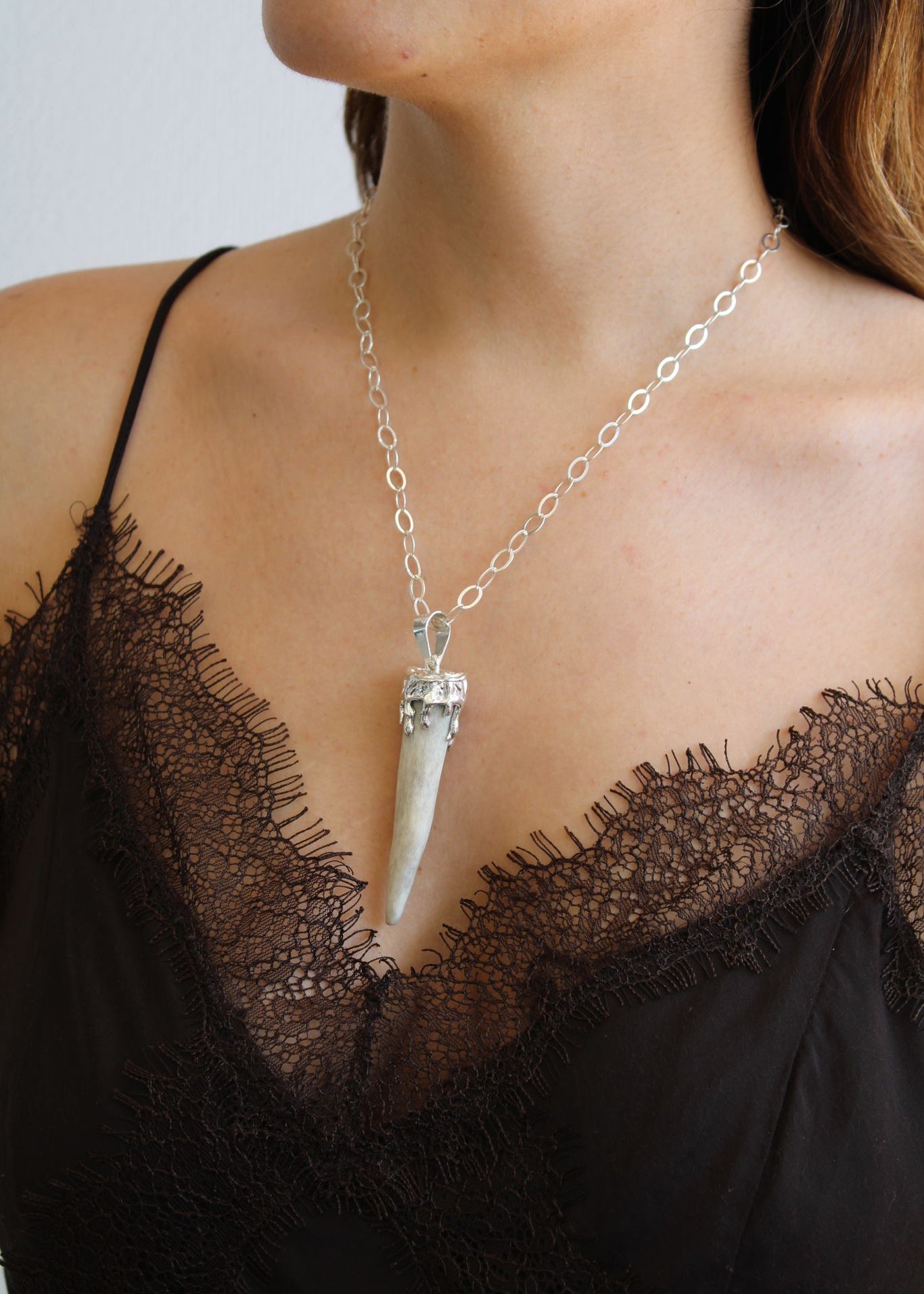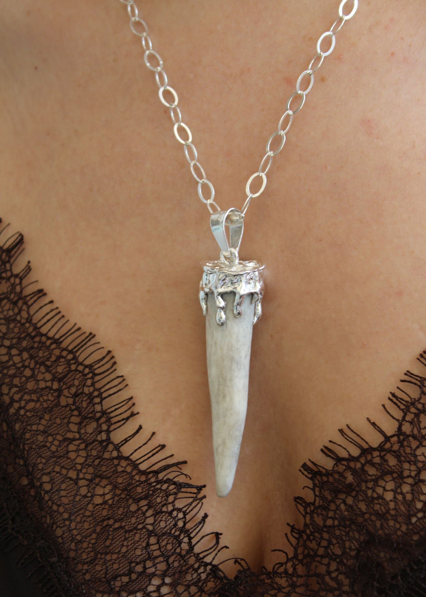 Dije cuerno de venado con diseño chorreado montado en plata .925.