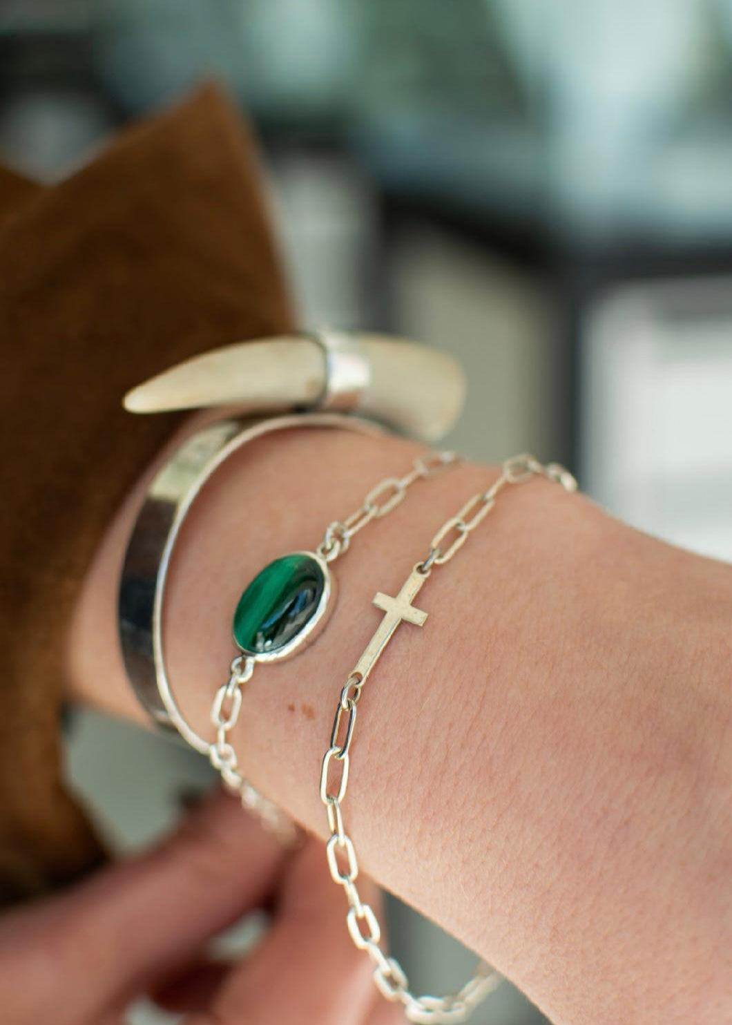 Pulsera de eslabones pequeños con una piedra en el centro montada en plata 925.